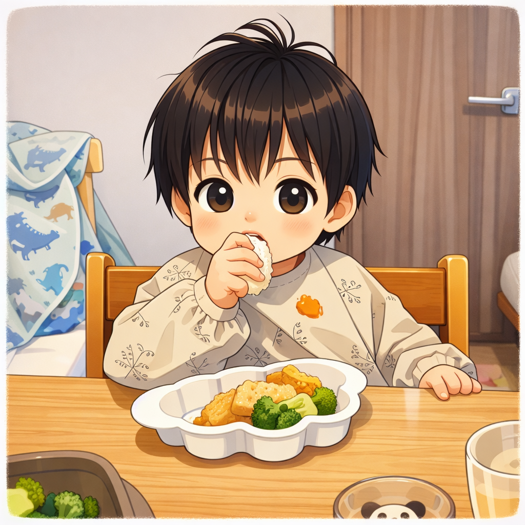 自ら積極的に食べ物を取って口へ運ぶため、「食べてくれない」という悩みがほとんどありません。